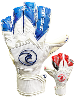 The Phantom ™ Fire & Ice. Red on Right Hand, Blue on Left hand and Clean white everywhere else! Lightweight, Flexible - yet offering wrist and backhand support, using our newest Monster Grip Pro 4mm German Grip.